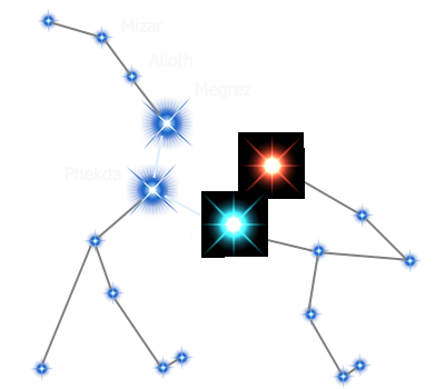 Your Guiding Star August 8th to 15th If you were born between these dates, your guiding stars are Dubhe and Merak, the two stars known as 'the pointers', as they point to the North Pole. August 24th to September 10th If you were born between these dates, your guiding stars are Phekda, Megrez, Alioth and Mizar, which lie along the Great Bear's Tail and also forms the handle of the Plough, the constellation's other name. Also called the Plough, the Big Dipper and the Casserole, the Great Bear is probably the best known and easiest to recognise of all the northern constellations. |